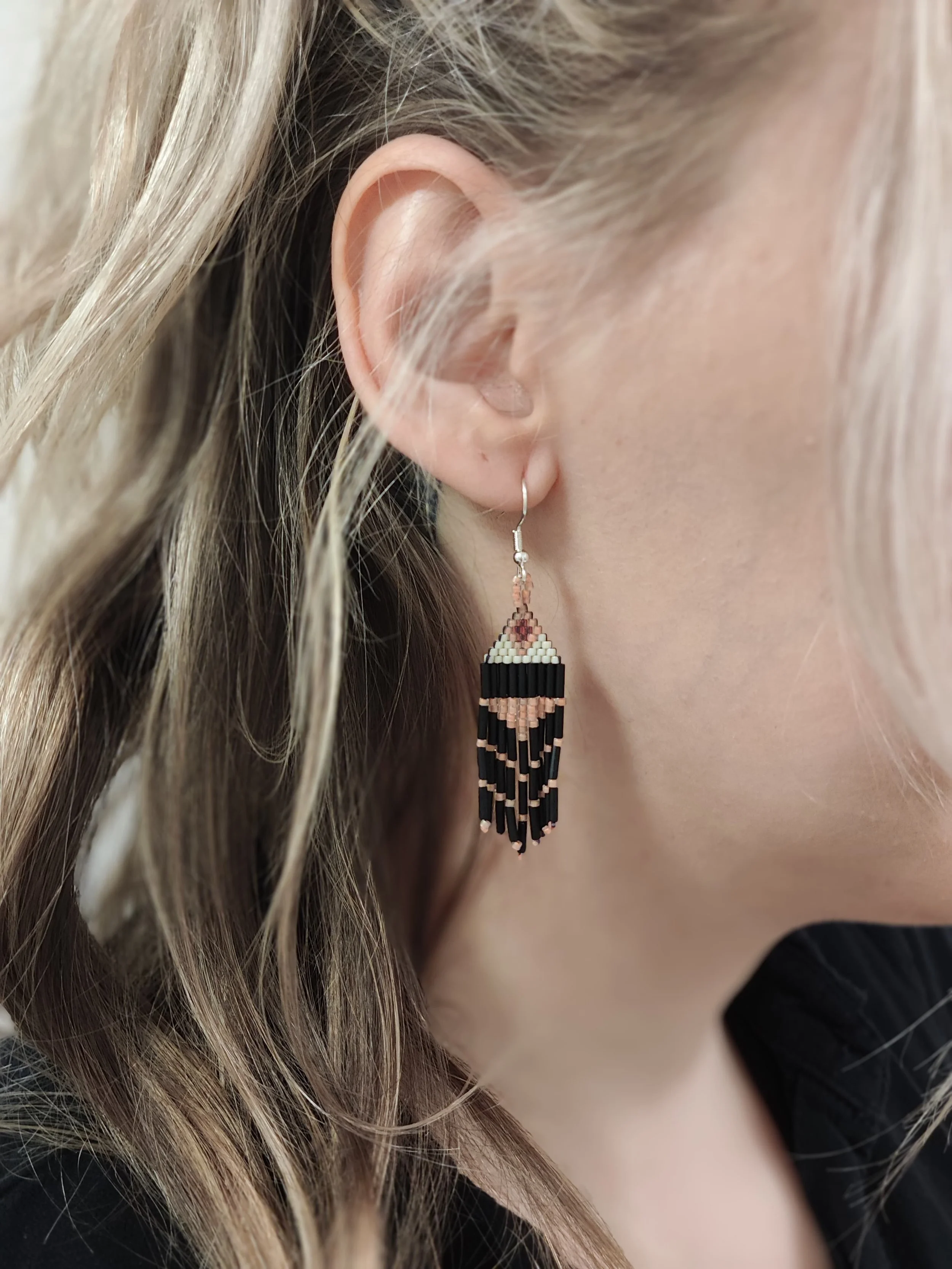 Options; with or without fringe, feathers, flat or cylindrical shapes, or choose from my gallery of ready made beadwork creations.