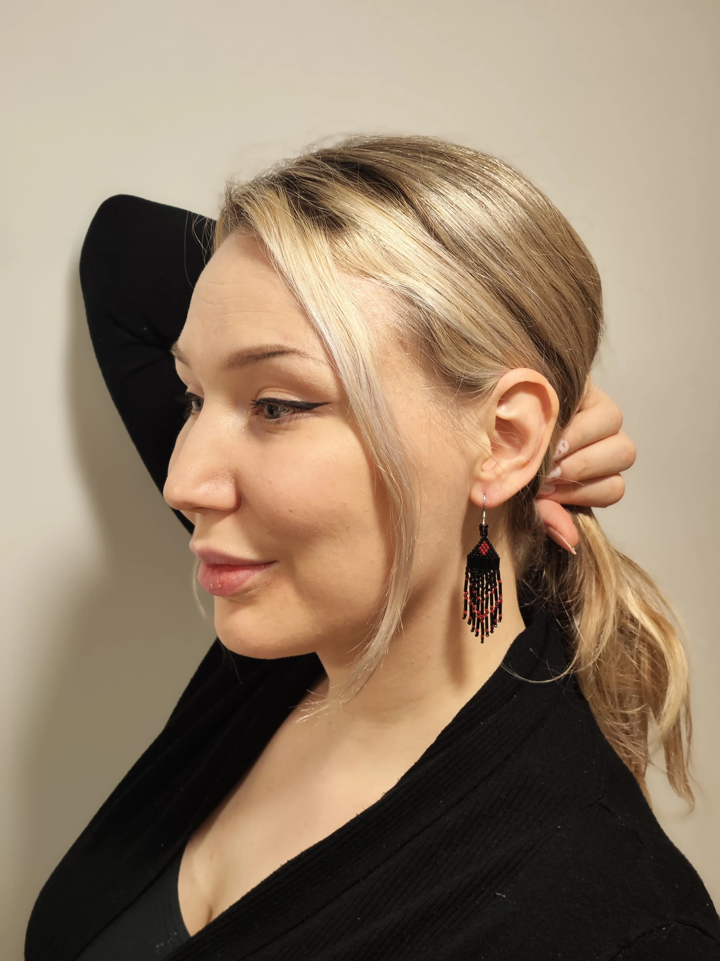 My beaded jewelry is usually based on traditional Native motifs, all works are created primarily with glass seed beads.