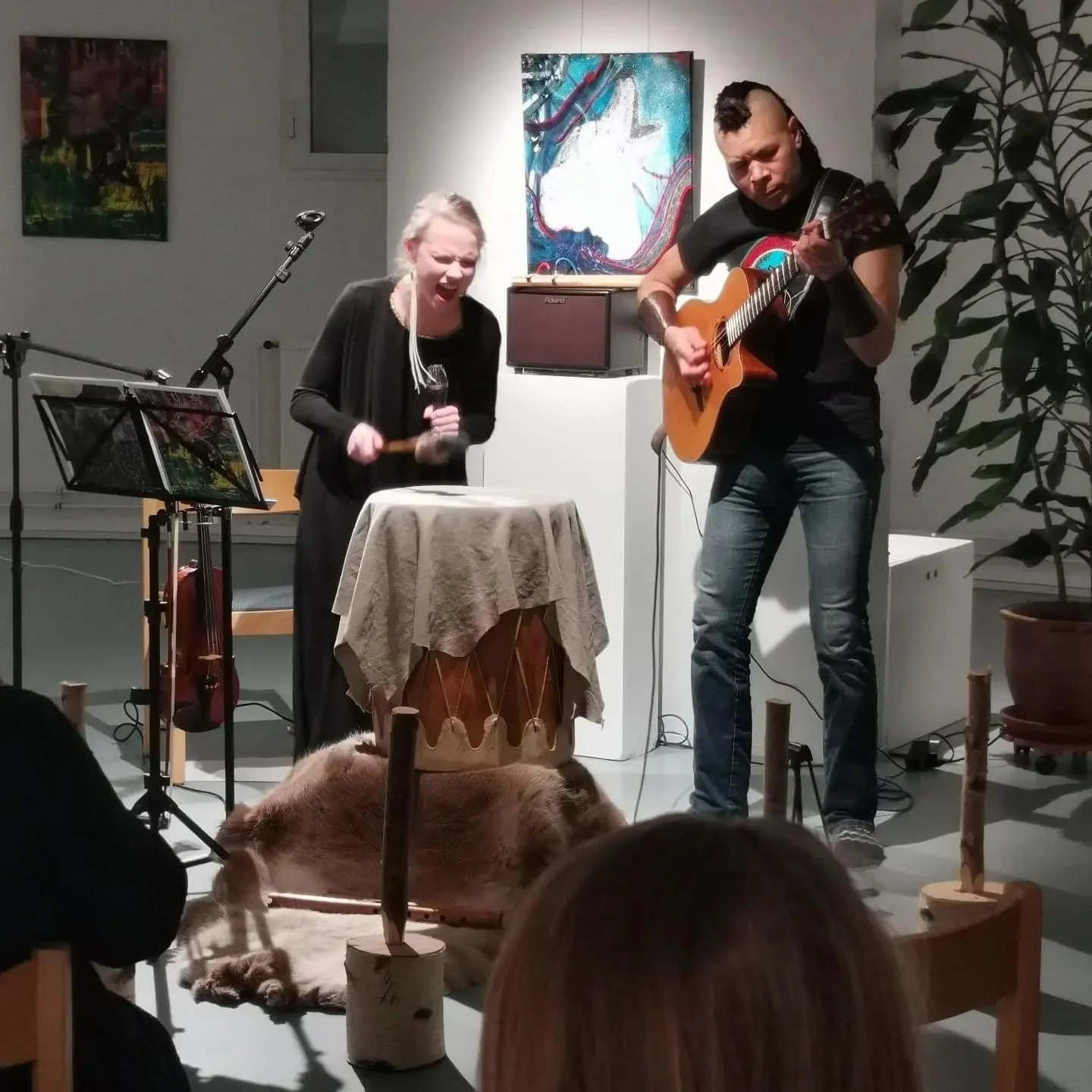 The songs are composed on guitar, drum, violin, vocals and Native American flutes. The resulting alchemy is Ikiverso (Tuulikki Jalkanen and Lakota Longwalker), a unique musical ensemble that you won't hear anywhere else. All songs are composed by Ikiverso with the exception of Pre-Columbian folk songs from North, and South America, and songs that are inspired by, and continuing in the Finnish/Karelian spell song tradition.